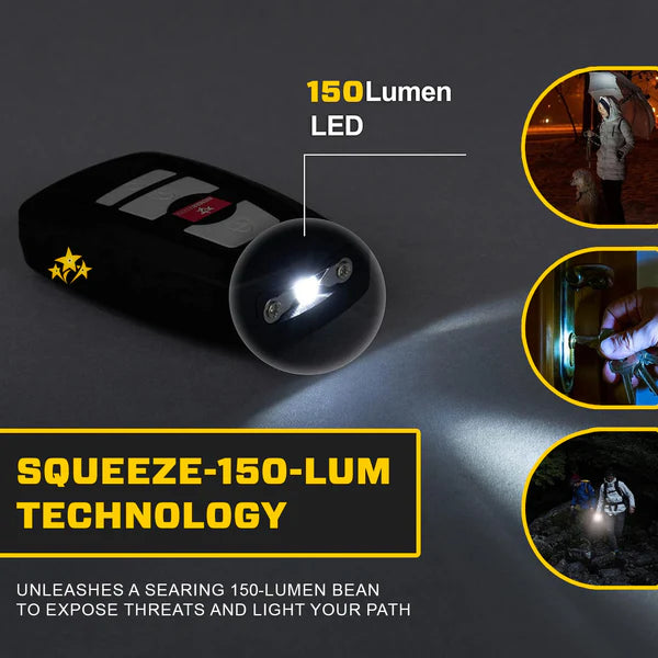 The built-in tactical flashlight emits 150 lumens of blinding light, enough to illuminate dark streets, alleys, parking lots, campsites, or even the area around your car before you get in. It's the perfect everyday tool for safety at night, allowing you to see clearly and react quickly - before danger gets close.